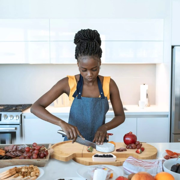 Tento tác nejen elegantně vystavuje vaše občerstvení, ale také slouží jako prkénko. Jeho hladký dřevěný povrch usnadňuje krájení a servírování všech vašich oblíbených pochoutek na jednom místě.
